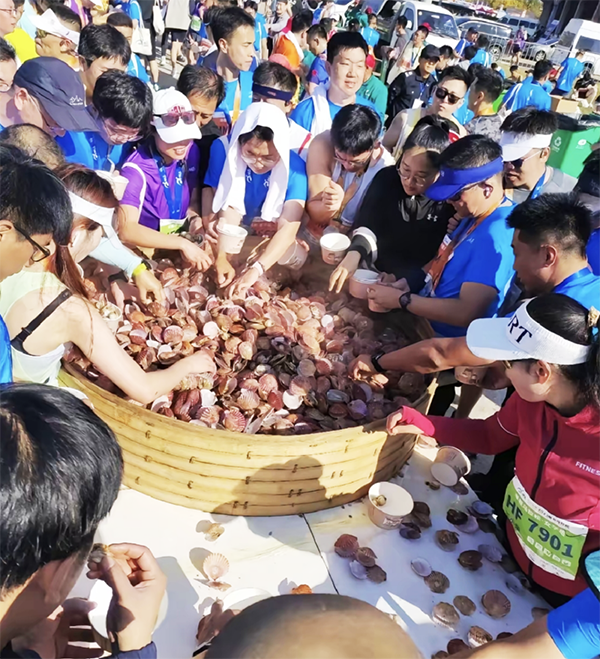 烟台为这次举办的马拉松比赛,在赛道沿途设置很多烟台特色美食,有烟台苹果、莱阳梨、鲅鱼水饺、海鲜大咖、鲈鱼、狮子头、釜摊、削炒鸡、海鲜包子等六个特色补给站,此外还在终点设置了烟台美酒补给长廊。